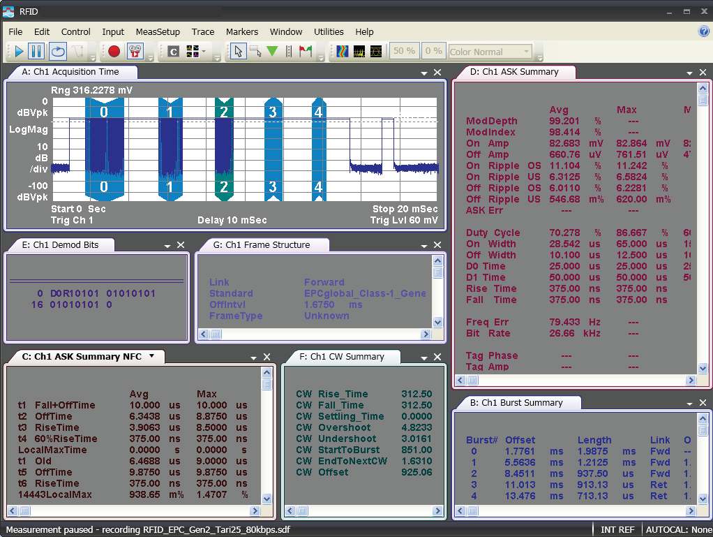 Un moderno analizzatore di spettro e segnali in tempo reale può anche demodulare i simboli o i bit associati con la query del tag: all'utente basta semplicemente selezionare lo standard RFID appropriato, tipo di modulazione e il formato di decodifica.