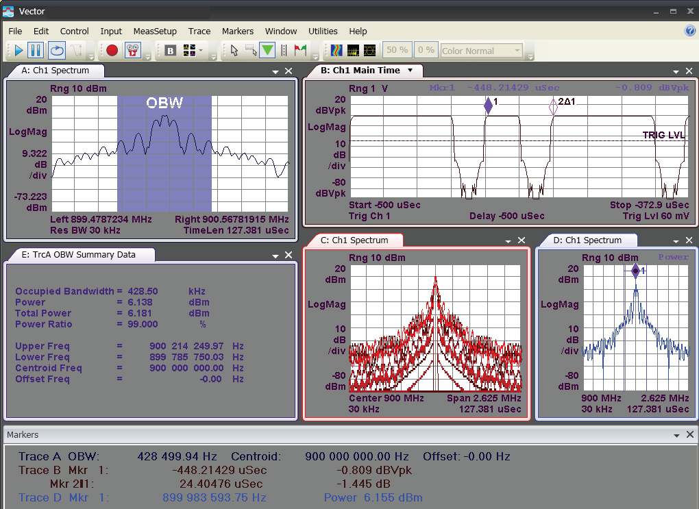 Allo stesso modo, gli analizzatori di segnali vettoriali sono utili per catturare i transitori dei segnali RF e verificare la qualità della modulazione.